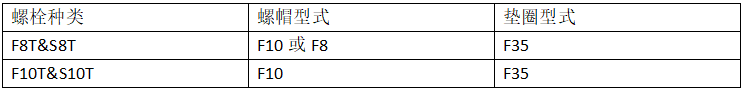 螺栓需配合螺帽及垫圈使用,高强度双头螺栓的使用尺寸,螺栓、螺帽加上垫圈组成螺栓组,表四及表五分别为 ASTM 及 JIS 高强度螺栓组的组合。耐候钢材应该配合耐候型螺栓、螺帽及垫圈使用。