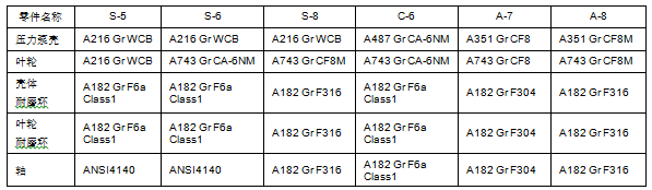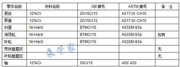 不同的泵制造商根据各自的使用经验及综合各种因素,在材料选用上存在较大差异: