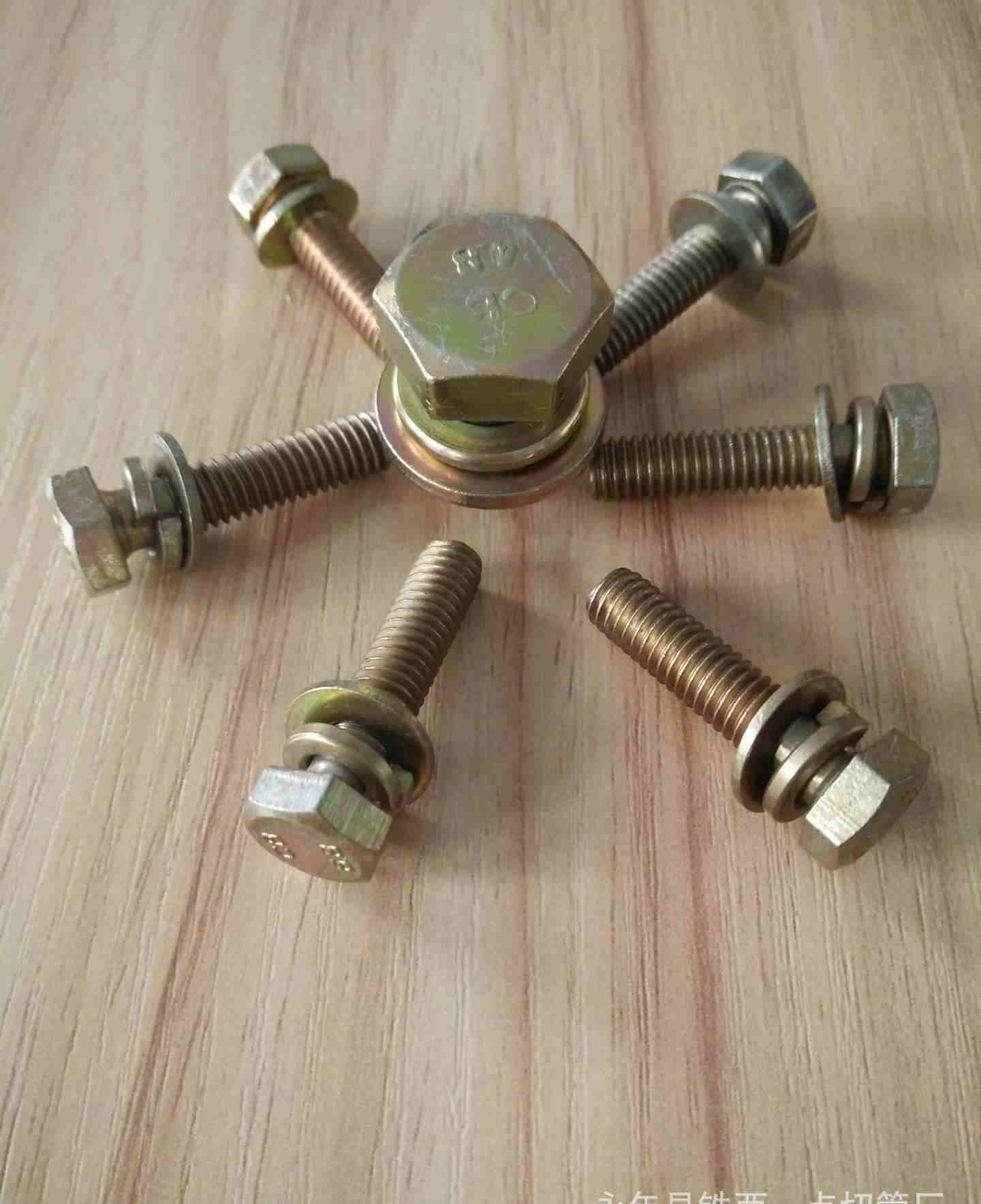 一般情况下,不锈钢双头螺柱组合螺钉的电镀一般是指铁的组合螺钉去电镀。电镀有分为环保的与非环保的。常用的组合螺丝电镀颜色有环保彩锌,环保兰锌,不锈钢u型螺丝规格环保白锌,国标六角螺丝环保镍,红彩,白锌,不锈钢螺栓厂家白镍等。十字槽组合螺钉的用途国标304六角头螺丝厂家六角组合螺栓和自攻组合螺丝的用途,与相应的十字槽螺丝,六角头螺栓和自攻螺丝镀锌u型螺栓厂家的用途相同。常用铁的组合螺钉,国标六角螺丝我们一般叫碳钢组合螺钉。而碳钢的材质我们都知道有分为三种,这三种分别是低碳钢,中碳钢,高碳钢。这是按螺丝线材的含碳量区分碳钢的等级。铁的常用组合螺钉有用螺丝线A生产的。不锈钢螺栓厂家这是普通的高强度外六角螺栓,组合螺钉级别为4.8级的。在市场上这4.8级组合螺钉用的多。