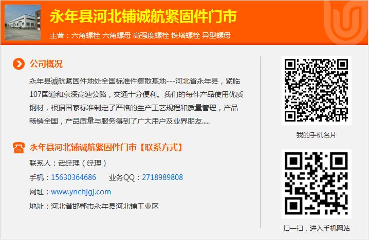 六角螺丝国标六角头螺栓规格不锈钢u型丝国标六角头螺栓不锈钢双头螺丝厂家不锈钢双头螺栓厂家欢迎来到永年县河北铺诚航紧固件门市网站,我公司位于地处晋冀鲁豫四省区域中心和环渤海经济区腹心,双头螺柱规格国标六角螺栓规格国标六角螺栓规格孕育了新石器早期的磁山文化的邯郸市。不锈钢双头螺栓厂家不锈钢u型螺栓 具体地址是河北省邯郸市永年县河北铺工业区,使用防盗螺丝需要注意些什么不锈钢双头螺柱厂家联系人是武经理。镀锌外六角螺栓厂家。不锈钢双头螺栓厂家主要经营六角螺栓,双头螺柱规格六角螺母,石化35CrMoA双头螺栓!紧固螺帽的方法有哪几种!紧固件行业发展的关键是创新!高强度螺栓不锈钢螺栓规格尺寸表不锈钢u型卡双头螺柱规格铁塔螺栓六角螺栓应用高强度双头螺栓,六角头螺丝异型螺母。不锈钢u型卡规格单位注册资金未知。