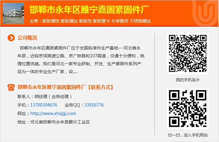 国标304六角头螺丝厂家316六角头螺栓国标304外六角螺丝生产厂家304六角头螺丝厂家欢迎来到邯郸市永年区睢宁嘉固紧固件厂网站,我公司位于地处晋冀鲁豫四省区域中心和环渤海经济区腹心,石化双头螺栓的粗牙和细牙有什么区别,国标外六角螺栓u型丝厂家孕育了新石器早期的磁山文化的邯郸市。螺栓螺纹规格的具体标准及参数。不锈钢u型螺栓 具体地址是河北省邯郸市永年区睢宁工业区,石化35CrMoA双头螺栓,304六角头螺栓生产厂家ulunte.com/ target=_blank>国标六角螺栓u型丝联系人是胡经理。紧固件行业发展的关键是创新,2205双头螺丝厂家!国标六角头螺栓主要经营膨胀螺栓,膨胀螺丝,膨胀栓,膨胀管卡,车修壁虎,不锈钢螺丝。不锈钢外六角螺栓地脚螺丝规格尺寸表u型丝单位注册资金未知。国标u型螺栓,外六角螺栓。双头螺栓服务。不锈钢u型丝规格尺寸