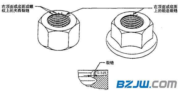 由于锻造产生并位于锁紧部分的裂缝,应能符合螺母机械和工作性能要求,还应符合: