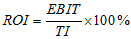 项目投资收益率是指项目达到设计能力后正常年份的年息税前利润或营运期内年平均息税前利润(EBIT)与项目总投资(TI)的比率。总投资收益率高于同行业的收益率参考值,表明用总投资收益率表示的盈利能力满足要求。