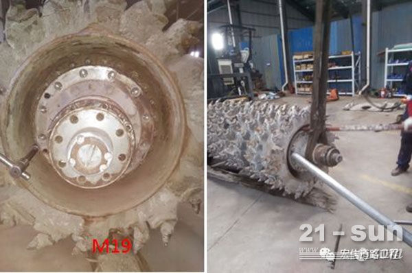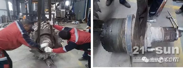 拆铣刨鼓驱动端安装螺丝时,由于所需要的扭矩较大,高强度t型螺栓如果没有大风炮扳手,可使用一根长度较长的钢管或拉杆替代。