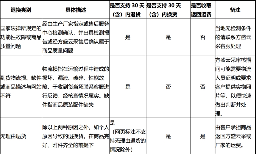 方盛云采承诺符合以下情况,地脚螺丝生产自客户收货之日起不影响二次销售,不锈钢等长双头螺栓可享受30日内退换货业务,地脚螺丝生产客户可在线提交申请办理退换货事宜。