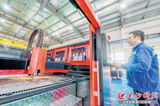 湖南大族智能装备制造基地的生产车间内,产业工人加紧对激光加工设备进行组装和调试。