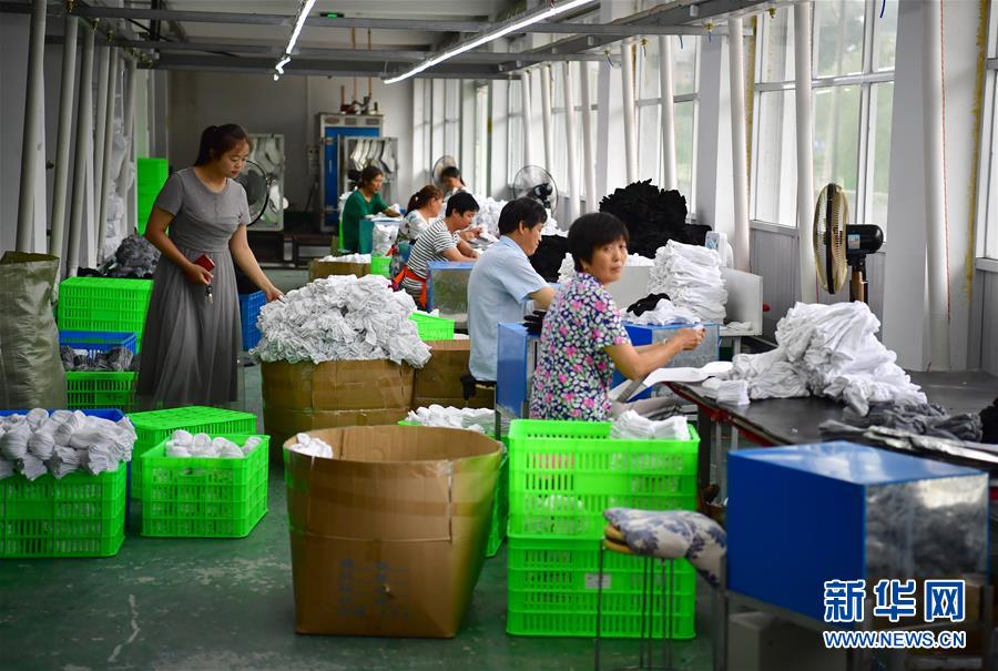 陜西省平利縣老縣鎮錦屏社區居民在社區工廠內工作(7月24日攝)。新華社記者 邵瑞 攝