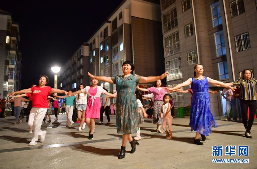 陜西省漢陰縣紫雲南郡移民安置社區居民在社區廣場上跳舞(7月24日攝)。新華社記者 邵瑞 攝